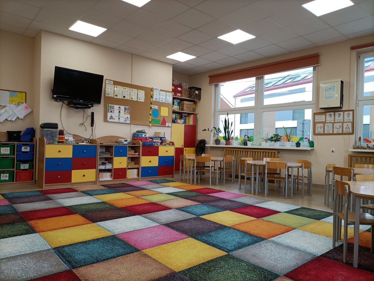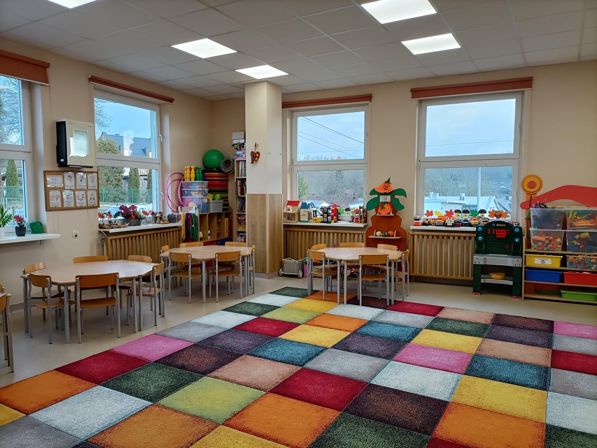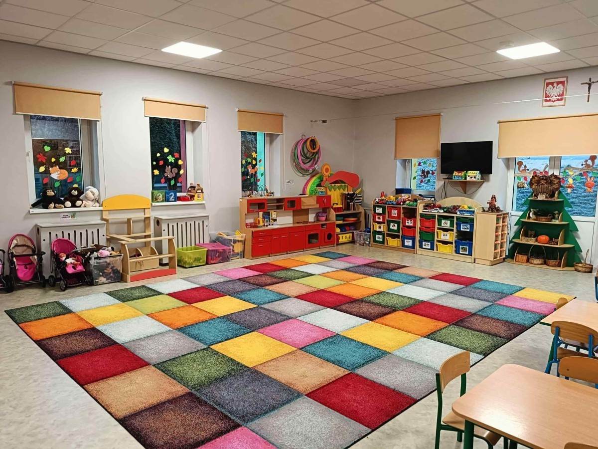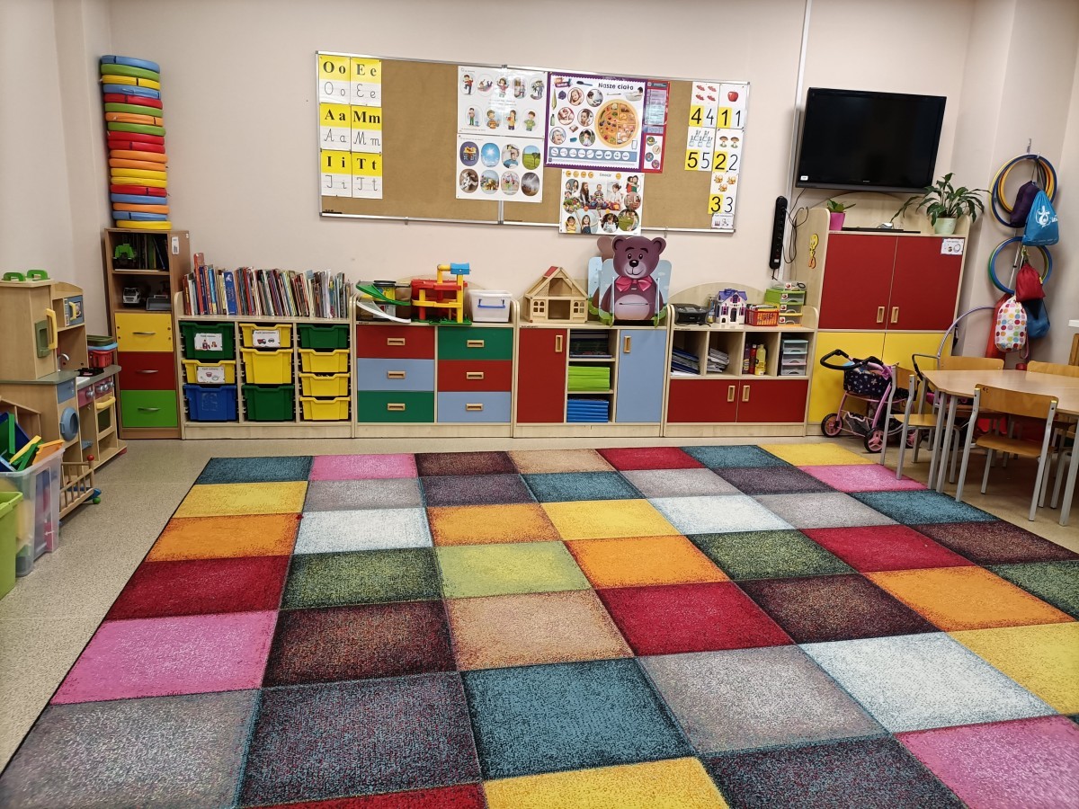 Każda grupa ma własną, kolorową salę wyposażoną w pomoce dydaktyczne, kąciki tematyczne, zabawki i materiały edukacyjne sprzyjające twórczej zabawie.